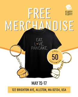 The first 50 customers to purchase a pancake will receive a FREE Fluffy Fluffy merch item.